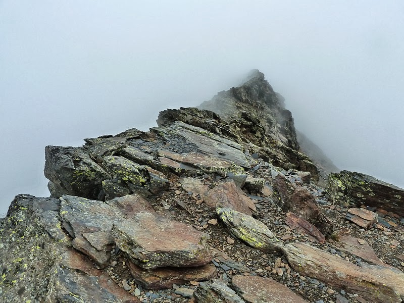 Después de las tormentas del viernes la meteo prevista para el sábado era de tiempo estable y más o menos soleado. Aunque en la cara norte de los Pirineos la niebla siempre acecha. Tuvimos estabilidad, pero no sol, lo que nos impidió poder disfrutar de lo que se habría visto desde la cima de haber estado despejado (¡la leche!). Volveremos.