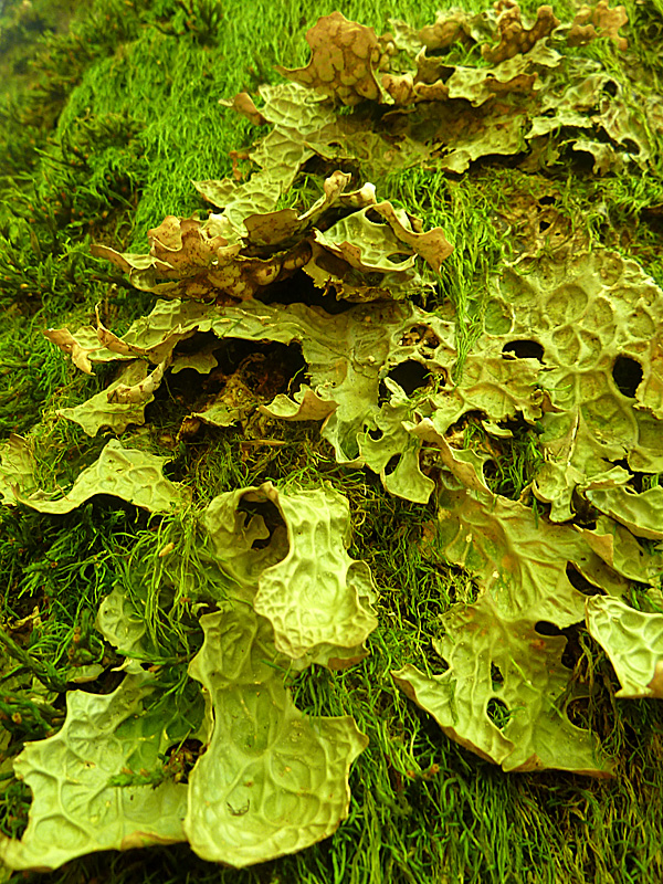 Lobaria pulmonaria no falta en la parte más húmeda de los troncos